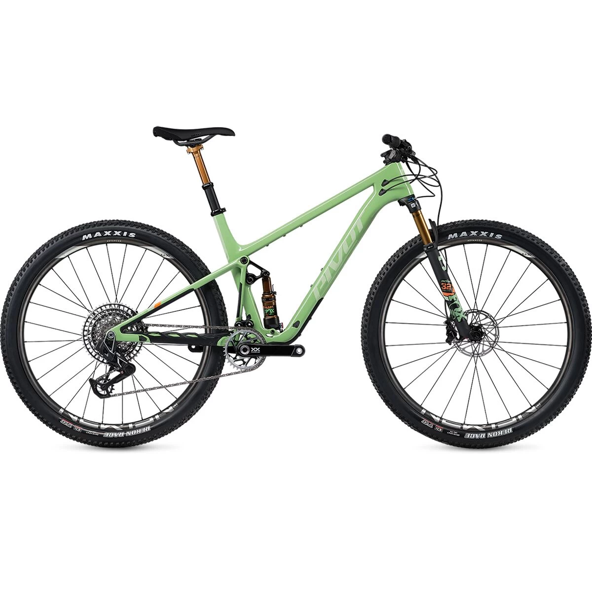 The World Cup XX Transmission AXS Carbon Wheel build of the Pivot Mach 4 SL is World Cup-ready and features some of the most impressive components on the market. Pivot’s premium carbon frame went through a weight loss program this year, shaving 280 grams over the previous version while maintaining the strength and stiffness needed for aggressive cross-country racing. SRAM’s XX SL Transmission AXS drivetrain provides flawless electronic shifting, a super-light carbon crankset, and features an overload clutch that can automatically move out of the way and realign itself in the event of a crash. For some lightening fast race wheels, Pivot slapped on the Reynolds Blacklabel 309/289 XC carbon rims paired with Industry Nine Hydra hubs to give us a lightweight and race-worthy wheelset. The World Cup build is equipped with a Fox Factory DPS rear shock for lightweight performance that excels in small bump sensitivity, and a Fox Factory 32 Step-Cast fork with 100mm of travel that is lightweight and helps to keep us under control. Both the fork and the shock have a lockout via a handlebar-mounted SRAM TwistLoc grip that allows us to easily lock out our fork and rear shock for maximum efficiency when climbing. Fox’s Factory Transfer SL dropper post gives us top-tier changes in saddle height at a super light weight, and premium Maxxis Rekon Race tires roll fast and give us the grip we need to compete.